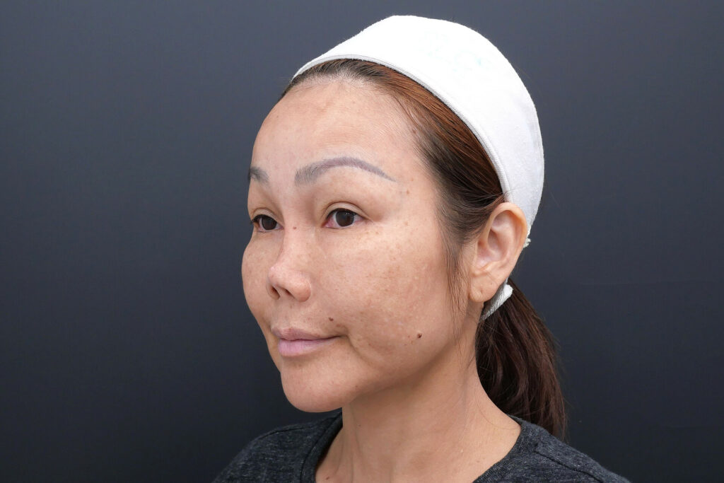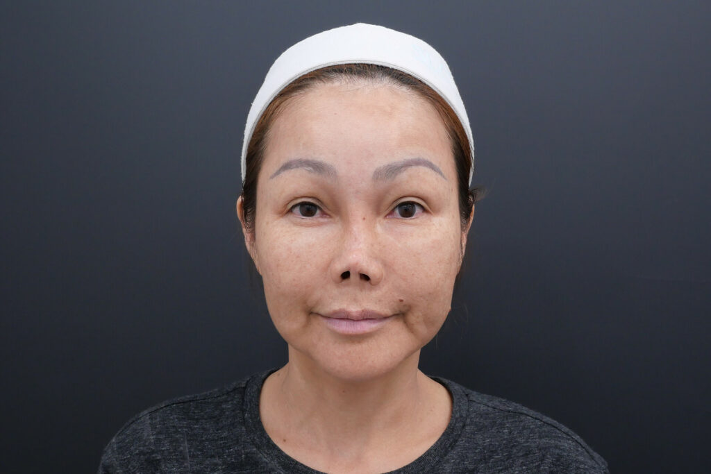 เคสนี้ก็เผชิญกับเหตุการณ์เดียวกัน เริ่มจากสันที่ยุบลง วันหนึ่งปลายจมูกตกลงมากกว่าปกติ และเมื่อถ่ายรูปด้านข้างก็เห็นได้ชัดเจนว่ามุมหน้าเปลี่ยนไปทั้งหมด เธอพยายามใช้คอนทัวร์งัดดั้งขึ้นมาใหม่ให้มีมิติ แต่สุดท้ายก็หนีความจริงไม่ได้ว่านี่คือปัญหาโครงสร้างที่ต้องได้รับการประเมินอย่างจริงจัง และไม่อาจแก้ด้วยวิธีเสริมทับหรือการปรับทรงเบื้องต้นได้อีกต่อไป