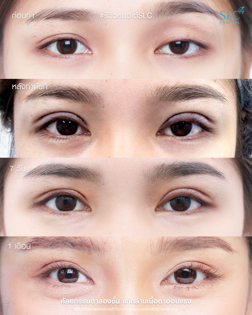 ที่ โรงพยาบาลศัลยกรรม SLC เรามีโปรแกรมการทำตาสองชั้นที่ ออกแบบมาเพื่อแก้ไขภาวะกล้ามเนื้อตาอ่อนแรงโดยเฉพาะ โดยจักษุแพทย์จะทำการผ่าตัดแก้ไขกล้ามเนื้อ Levator พร้อมกับการสร้างชั้นตาให้สวยงามและเป็นธรรมชาติในขั้นตอนเดียวกัน